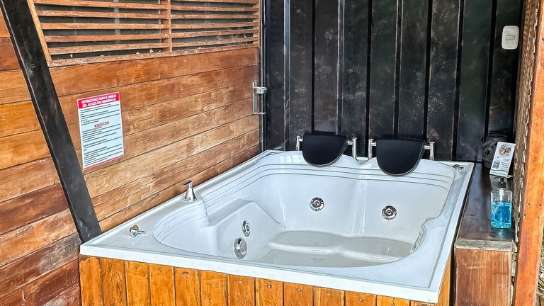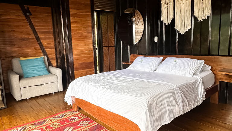 Cuenta con un solo nivel con cama queen, baño con ducha al aire libre, jacuzzi, zona de estar y malla mirador.
